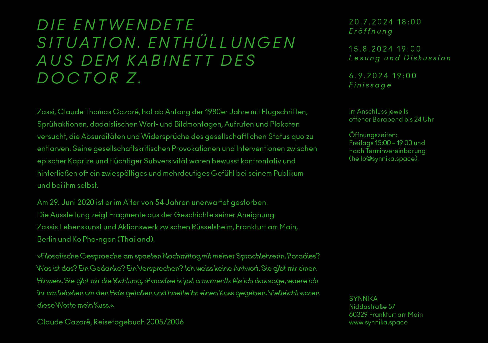 Zassis Lebenskunst und Aktionswerk zwischen Rüsselsheim, Frankfurt am